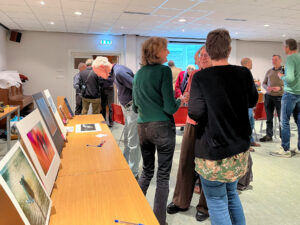 De eerste helft van het seizoen zit erop: we sluiten dit af met de traditionele Kerstborrel. Op het programma stond een toelichting van Bart op het laatste project van Wilmy, dat zij tijdens het mentoraat met Diana Bokje heeft gemaakt. Een heel persoonlijke serie die door de reflecties, abstracties en fijne kleuren emotie oproept bij de kijker. Nanda ging vervolgens in op ons jubileumproject Haarlemmers 0-100. Vragen werden beantwoord en de commissie probeert het voor de leden makkelijker te maken om deel te nemen. In de pauze werden de inzendingen voor de Plaat van de Maand-verkiezing uitgelegd. Onder genot van een drankje en een hapje, verzorgd door Jet en Patty, kon er worden gekozen uit een twintigtal mooie, zeer uiteenlopende foto’s. Gerphil werd de winnaar, met zijn sfeervolle trappenhuis in een Belgisch pand en Cor werd tweede met zijn tabletop.